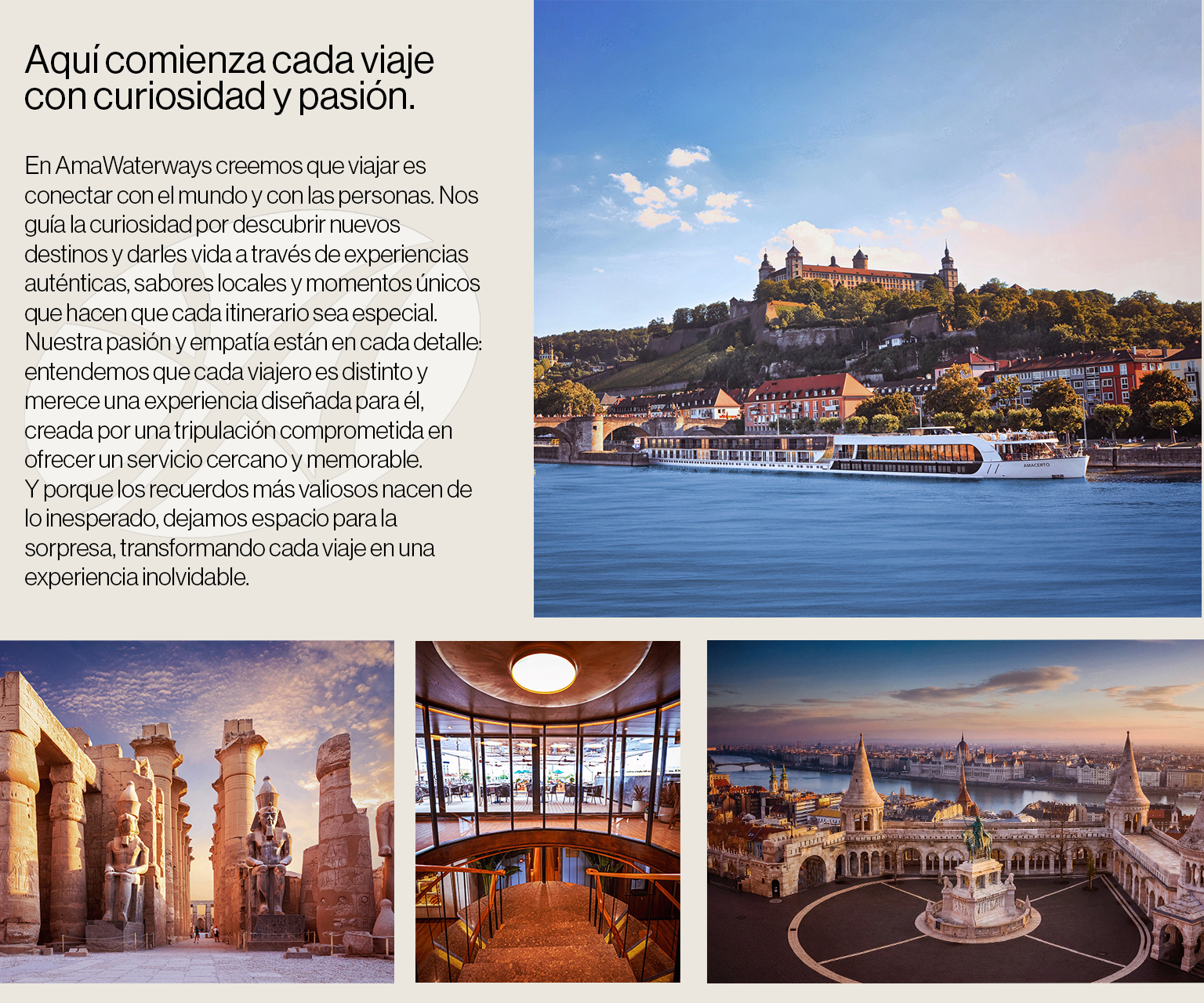En AmaWaterways y Tempo Reps, creemos que cada viajero es distinto y merece una experiencia diseñada para él, creada por una tripulación comprometida en ofrecer un servicio cercano y memorable.